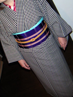 風香さんの千鳥格子きもの+先日の骨董市で買った1,500円の名古屋帯。着付けは(自分としては)なかなかうまくいったんだけど、コーディネイトが...。