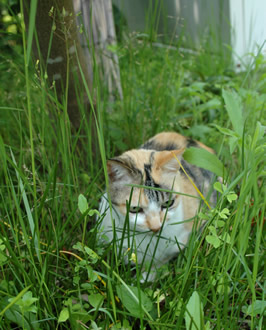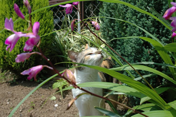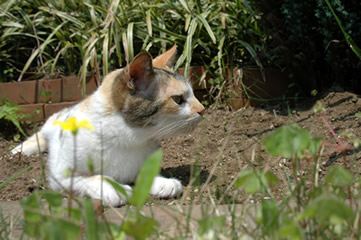 雑草ブッシュの中に身を潜めてみたり、かずおくんが手入れした花壇の土を蹴散らかしながらゴロゴロ転がってみたり、やることがいっぱいあって忙しそうだネー。