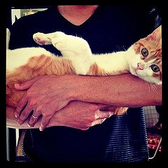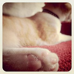 らくちゃんonデスク。私の仕事用デスクに巨体をひっくり返して絶賛営業妨害中の図。ペン立ての中身をひっぱりだしたりコードを噛んだり小物を落としたり、悪行三昧で毎日しかられています。