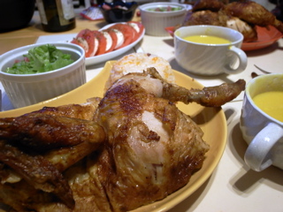 その足でカルフールに立ち寄り、ローストチキンなど購入。雑なもりつけではありますが、ようやくクリスマスっぽい夕食にありつけました。ワインは妹夫婦からのいただきもの。おいしかったー!ごちそうさまでした。