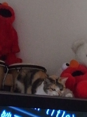 テレビの上にぬいぐるみがゴロゴロ...ん?よく見るとぬいぐるみじゃないのが混ざってる。